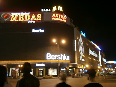 Mada says that the Romanians often have no money but they still spend tons on big cars and fancy clothes even when they can't afford it. After communism ended the foreign corporations moved in and everywhere you look are billboards and neon signs, BCBG, McDonalds, Pizza Hut, LG. The buildings fall down while new advertisements go up telling you to not look as your world falls apart, just buy buy BUY! Romania has very little local economy, and the corporations have taken over everywhere. It's such a commentary on corporate greed, pushing people to spend what little they have on useless crap when they can barely live. On the top of every derelict apartment there is a shiny new billboard advertising products from some other country.
